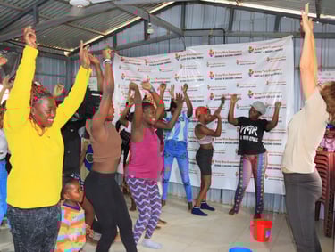 Warming-up during morning devotion with founder Njeri Kabiru.